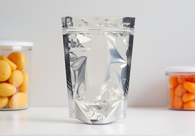 Aluminium Stand Up Zipper Pouch | 5*7 inch | Front Transparent, Back Aluminium Foil | Food Grade, Resealable & Heat Sealable Bags for Snacks, Spices, Dry Fruits, Coffee & More (50, One Size)